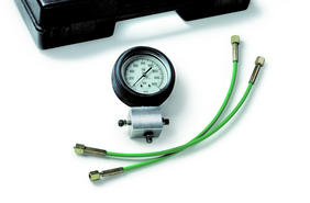 voidaan suorittaa eri kierrosnopeuksilla. Mittarin halkaisija 100 mm ja mittausalue 0...1600 bar. Toimitukseen sisältyy 2 0,5 m:n pituista korkeapaineletkua.